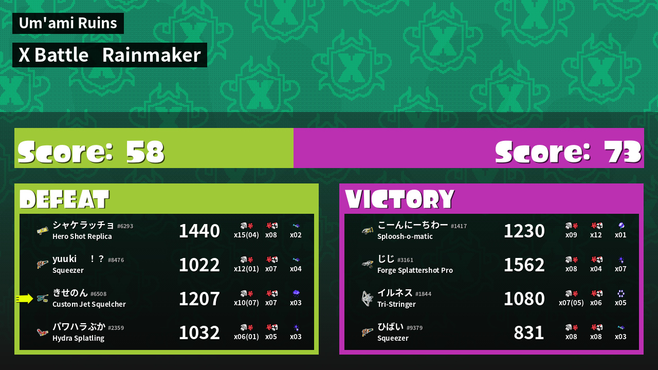 | Mode | Rainmaker - X Battle | ||