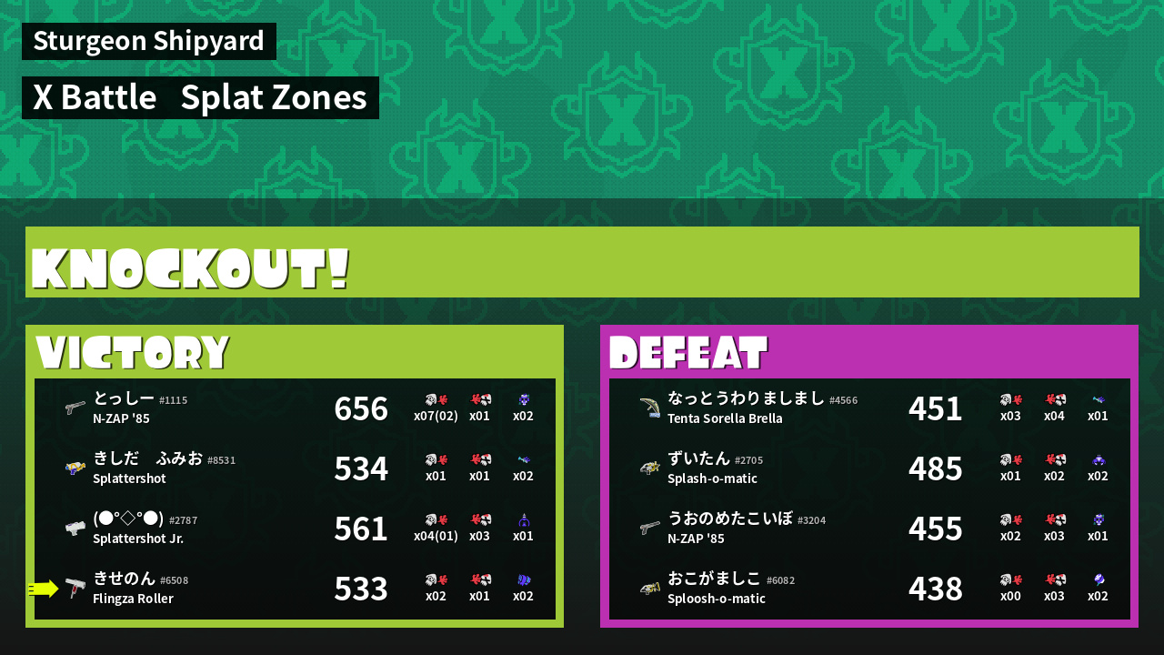 | Mode | Splat Zones - X Battle | ||