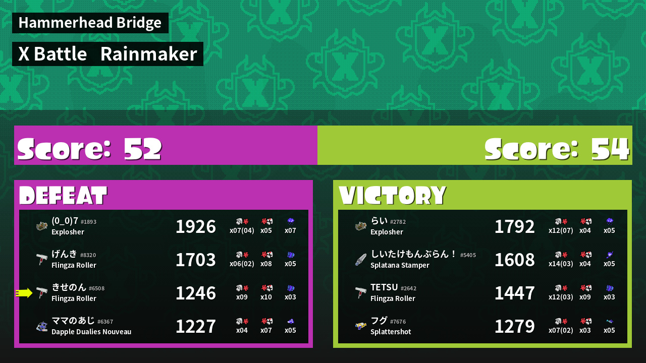 | Medals | #1 Overall Splatter #1 Enemy Splatter #1 Rainmaker Stopper | ||