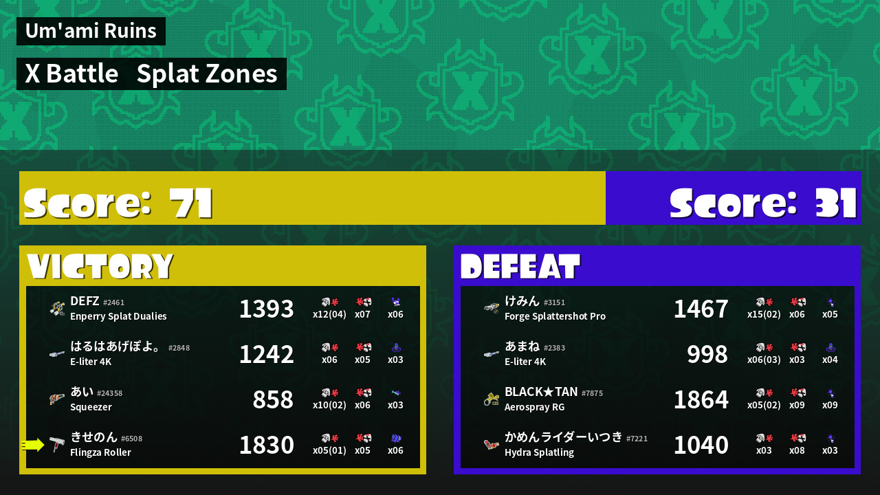 | Weapon | Flingza Roller ( Ink Mine / Tenta Missiles) | ||