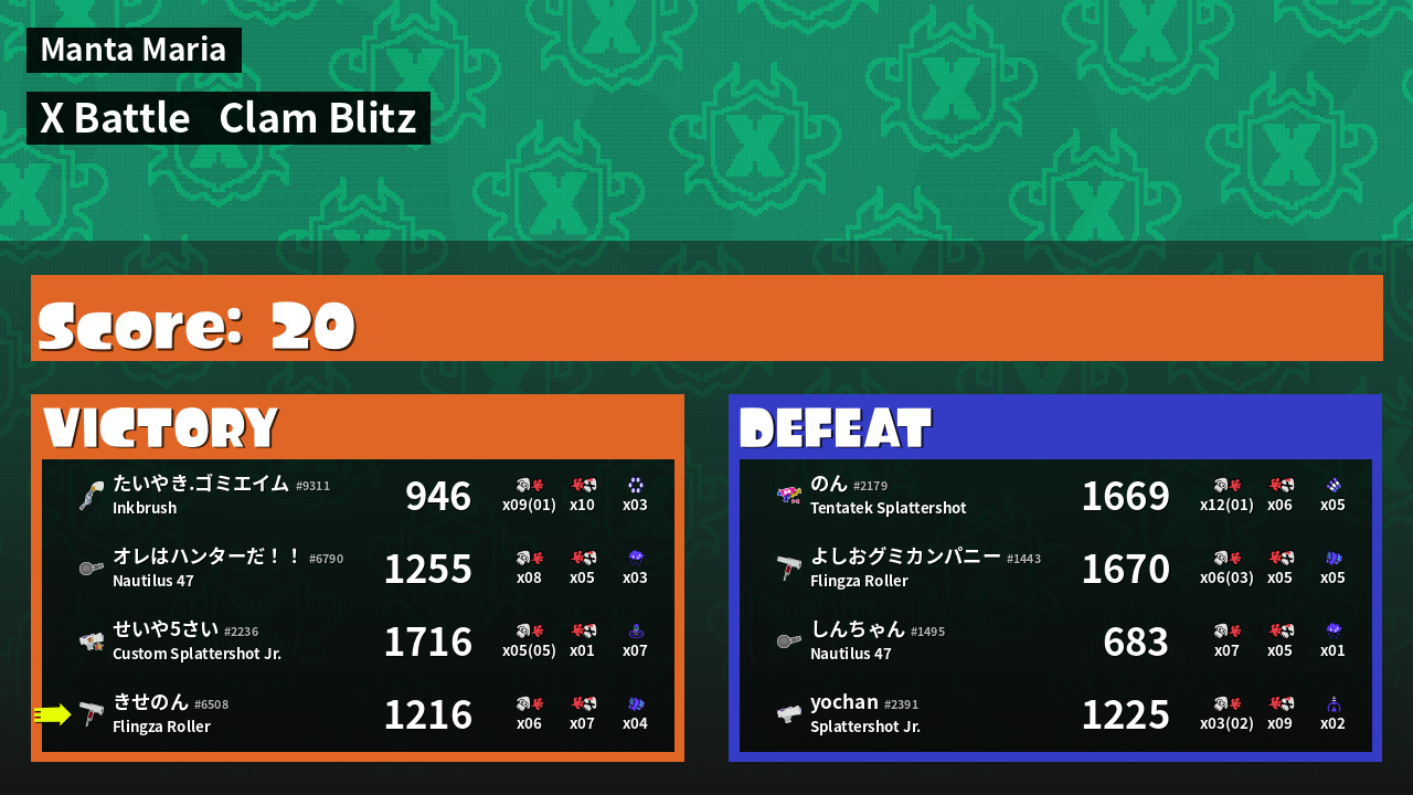 | Medals | #1 Clam Carrier #1 Tenta Missiles User #2 Popular Target | ||