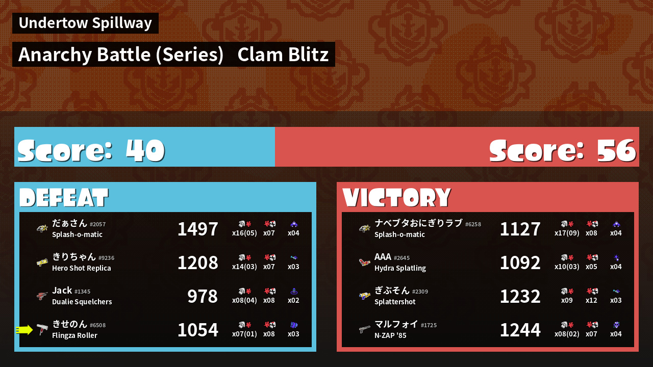 | Mode | Clam Blitz - Anarchy Battle (Series) | ||