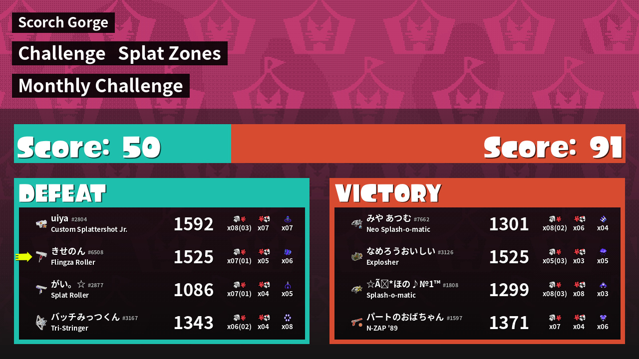 | Medals | #1 Splat Zone Guard #1 Enemy Splatter #1 Tenta Missiles User | ||