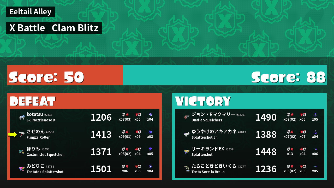 | Mode | Clam Blitz - X Battle | ||