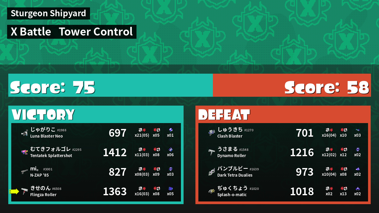 | Mode | Tower Control - X Battle | ||