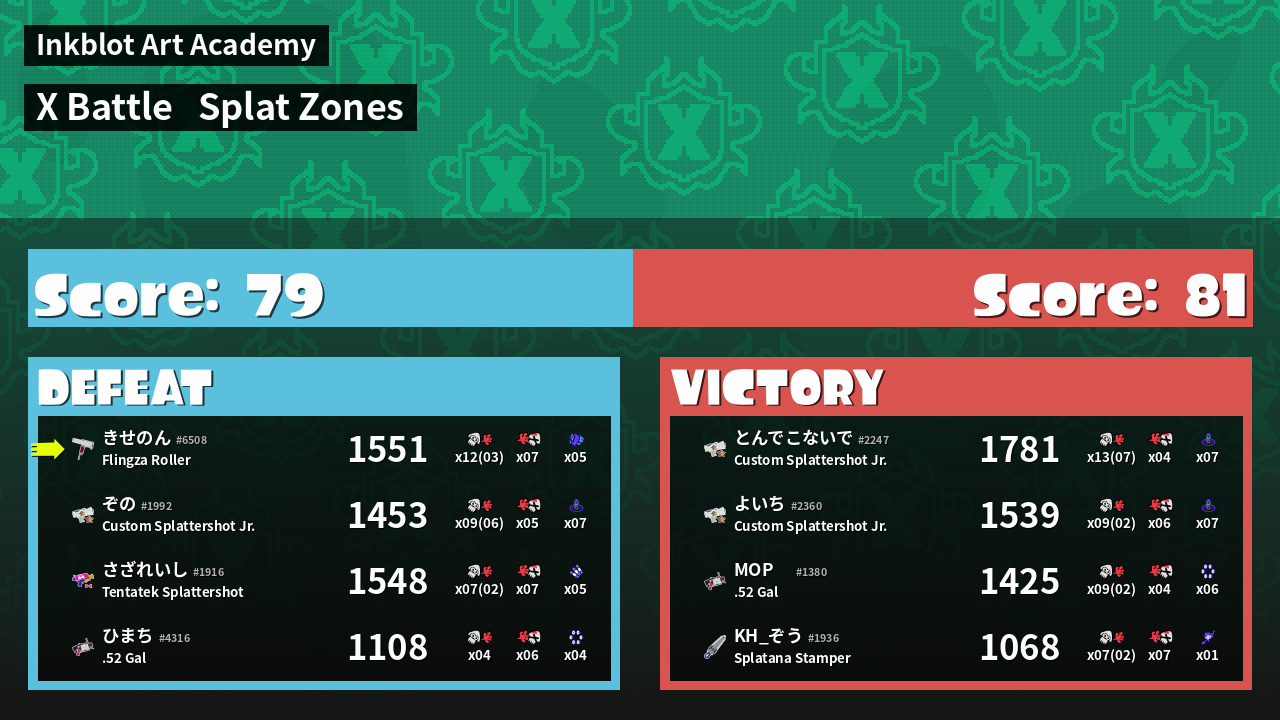 | Medals | #1 Overall Splatter #1 Splat Zone Guard #1 Turf Inker | ||
