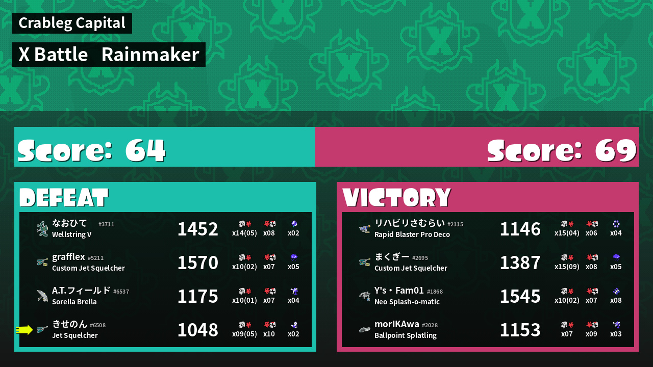 | Mode | Rainmaker - X Battle | ||