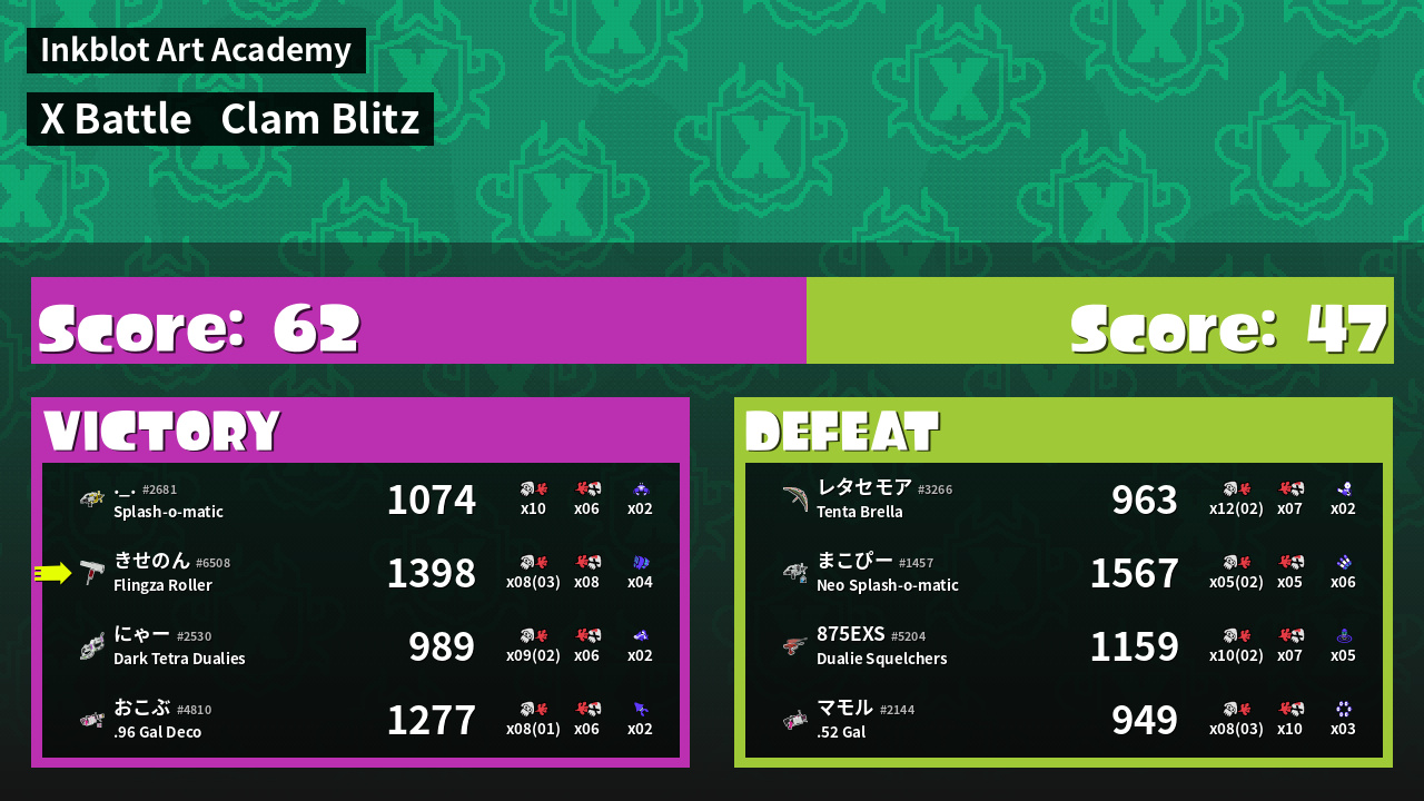 | Weapon | Flingza Roller ( Ink Mine / Tenta Missiles) | ||