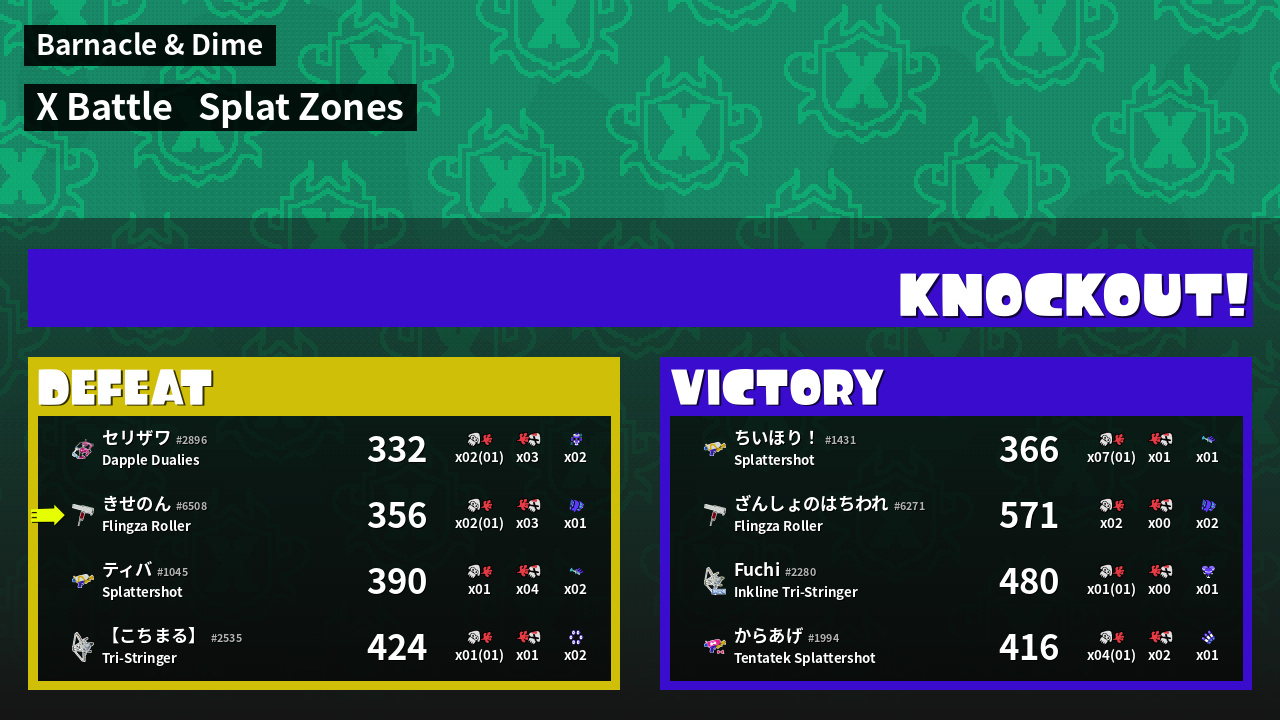 | Mode | Splat Zones - X Battle | ||