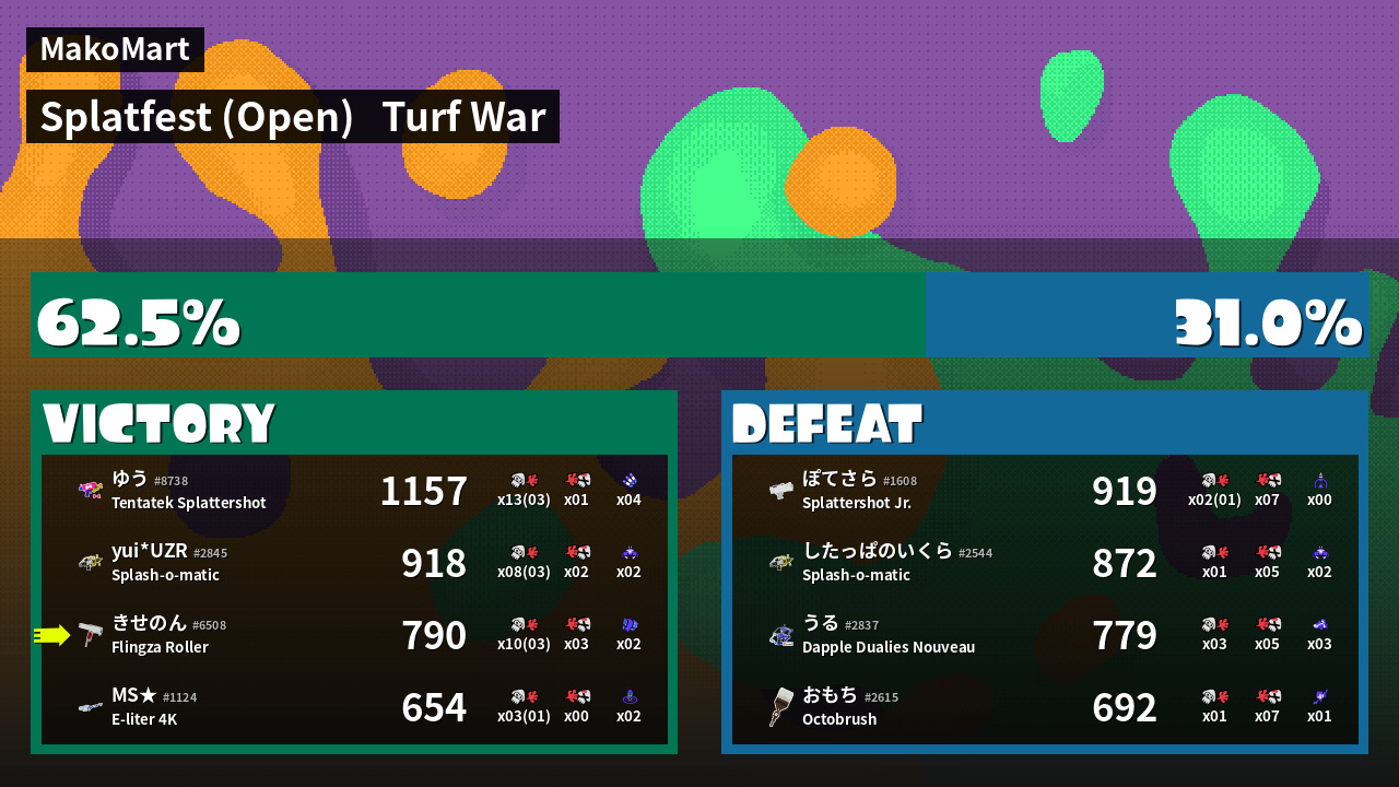 | Medals | #1 Enemy-Base Inker #1 Splat Assister #1 Ground Traveler | ||