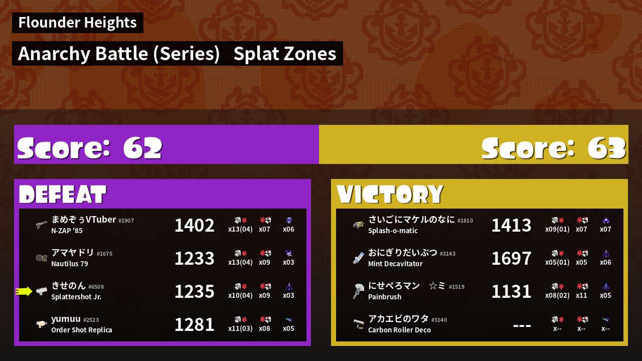 | Mode | Splat Zones - Anarchy Battle (Series) | ||