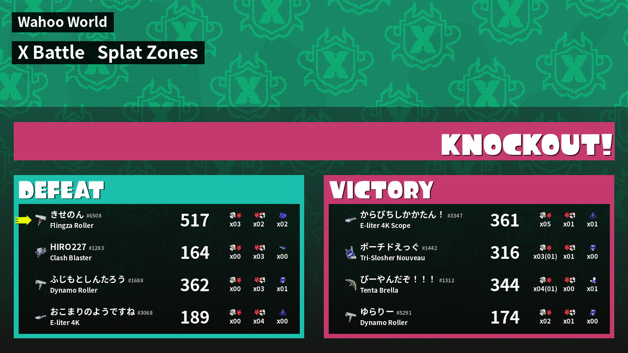 | Weapon | Flingza Roller ( Ink Mine / Tenta Missiles) | ||