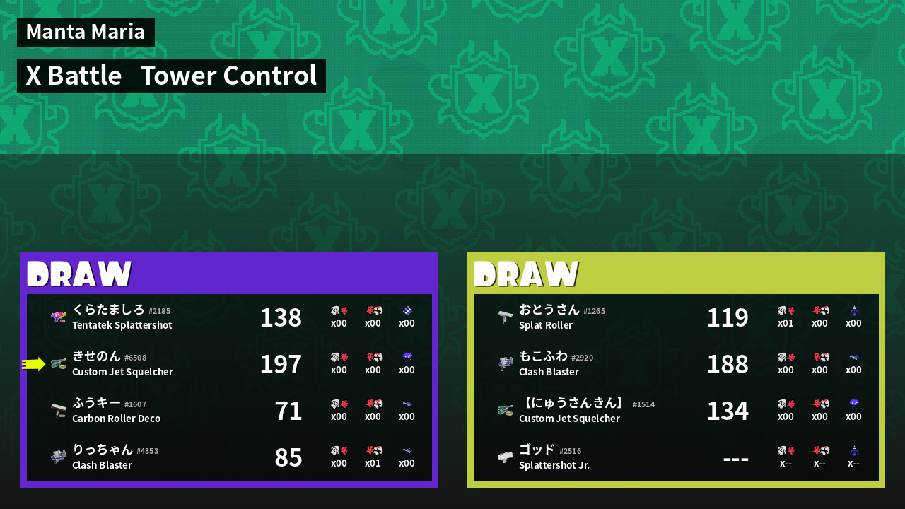 | Mode | Tower Control - X Battle | ||