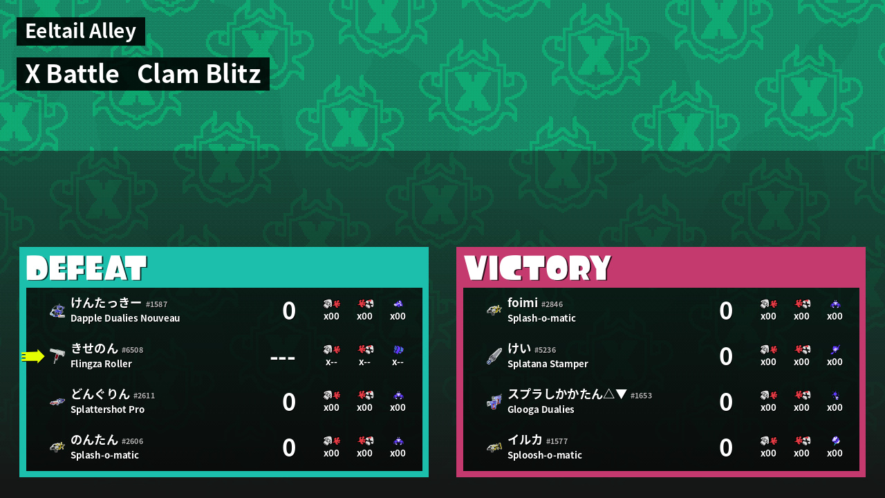| Mode | Clam Blitz - X Battle | ||