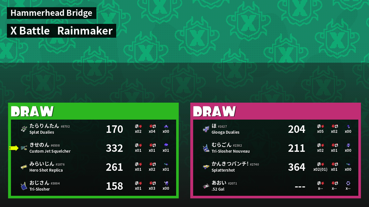 | Mode | Rainmaker - X Battle | ||