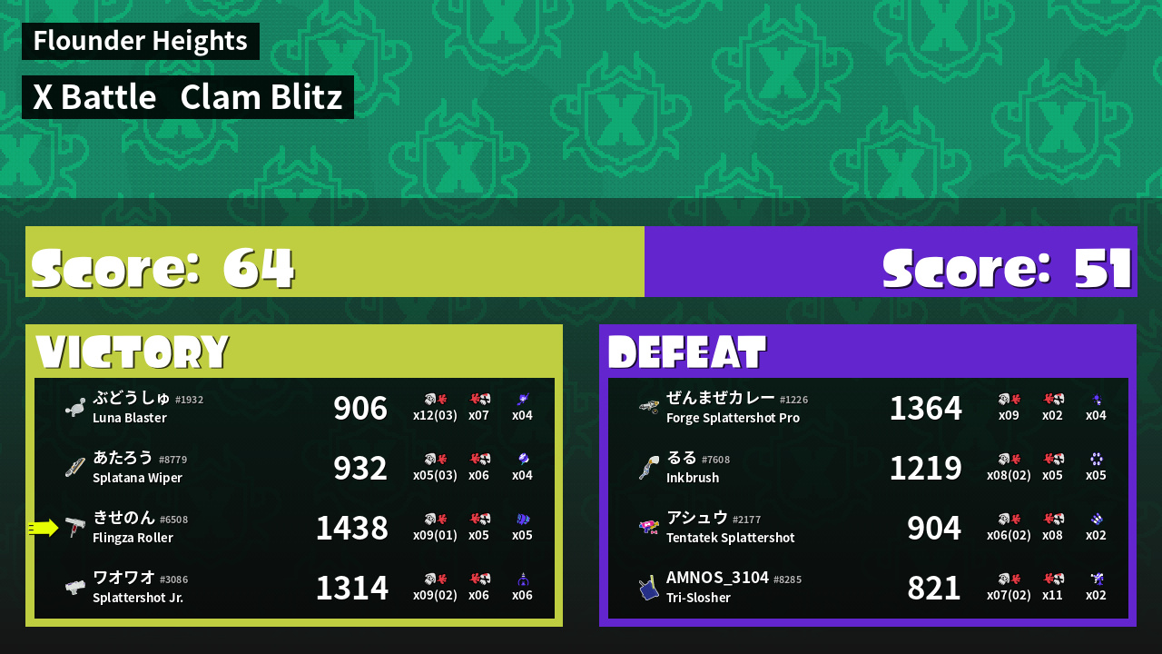 | Weapon | Flingza Roller ( Ink Mine / Tenta Missiles) | ||