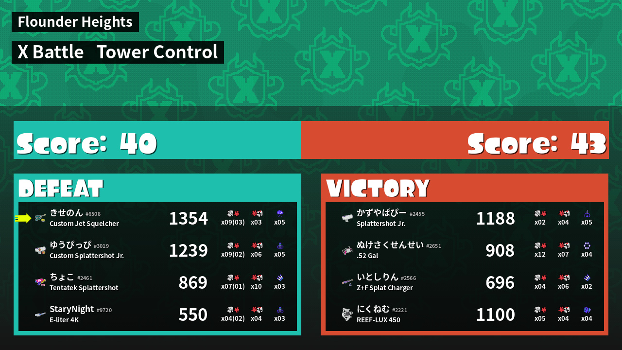 | Mode | Tower Control - X Battle | ||