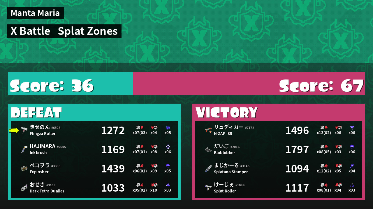 | Weapon | Flingza Roller ( Ink Mine / Tenta Missiles) | ||