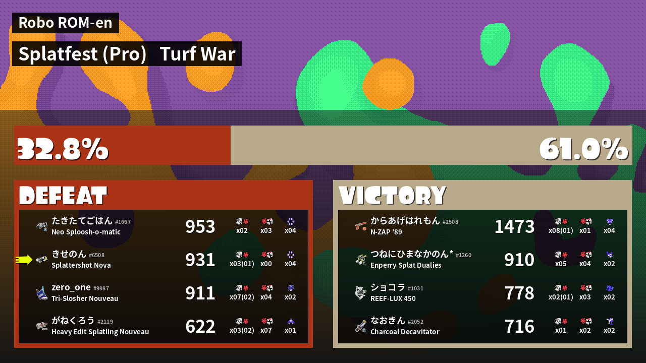 | Mode | Turf War - Splatfest (Pro) | ||