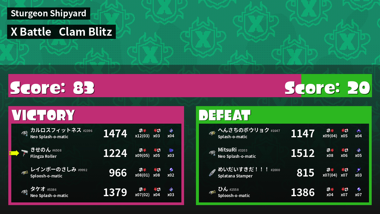 | Medals | #1 Super Jump Spot #1 Splat Assister #1 Clam Stopper | ||