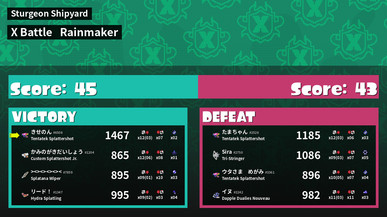 | Medals | #1 Overall Splatter #1 Turf Inker #1 Enemy Splatter | ||