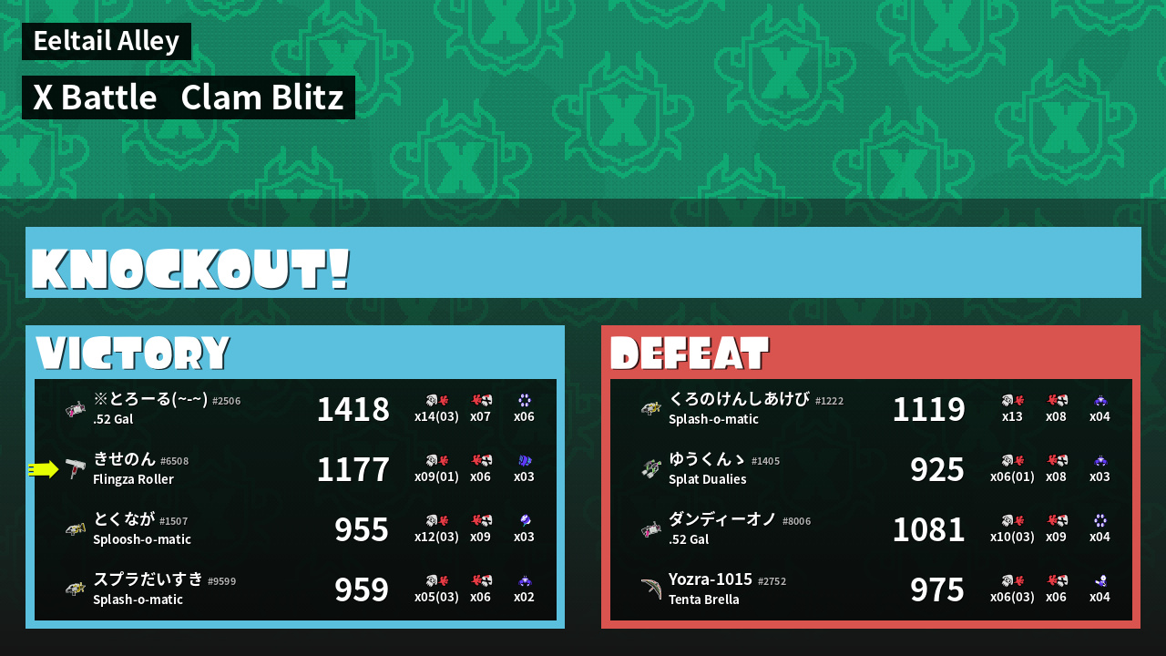 | Mode | Clam Blitz - X Battle | ||