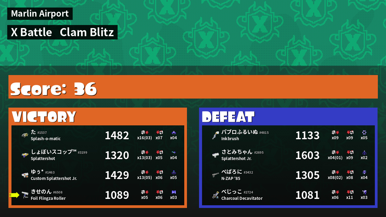 | Mode | Clam Blitz - X Battle | ||