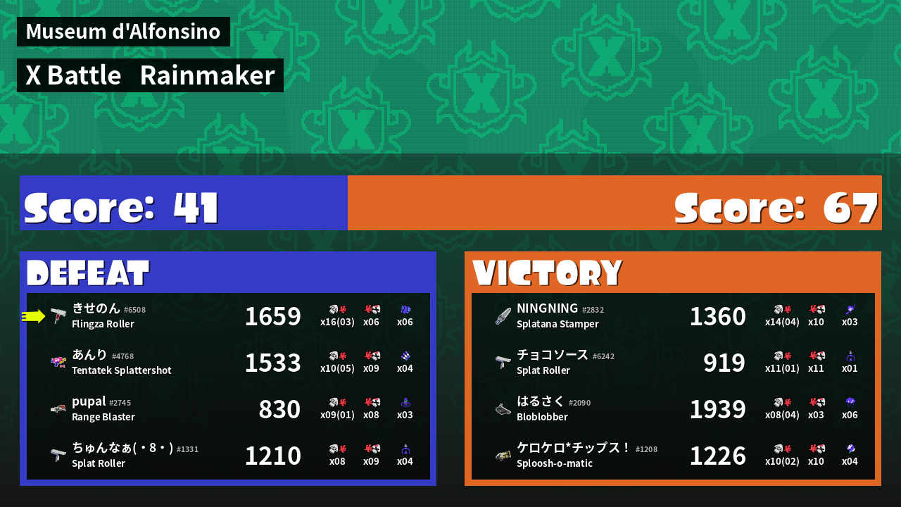 | Weapon | Flingza Roller ( Ink Mine / Tenta Missiles) | ||