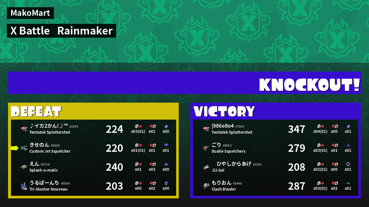 | Medals | #1 Splat Assister #1 Ground Traveler #1 Damage Taker | ||