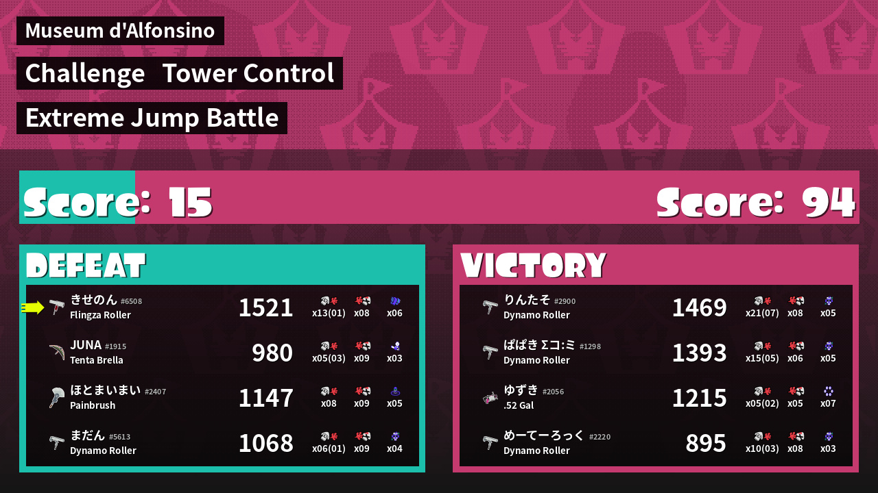 | Medals | #1 Overall Splatter #1 Turf Inker #1 Enemy Splatter | ||