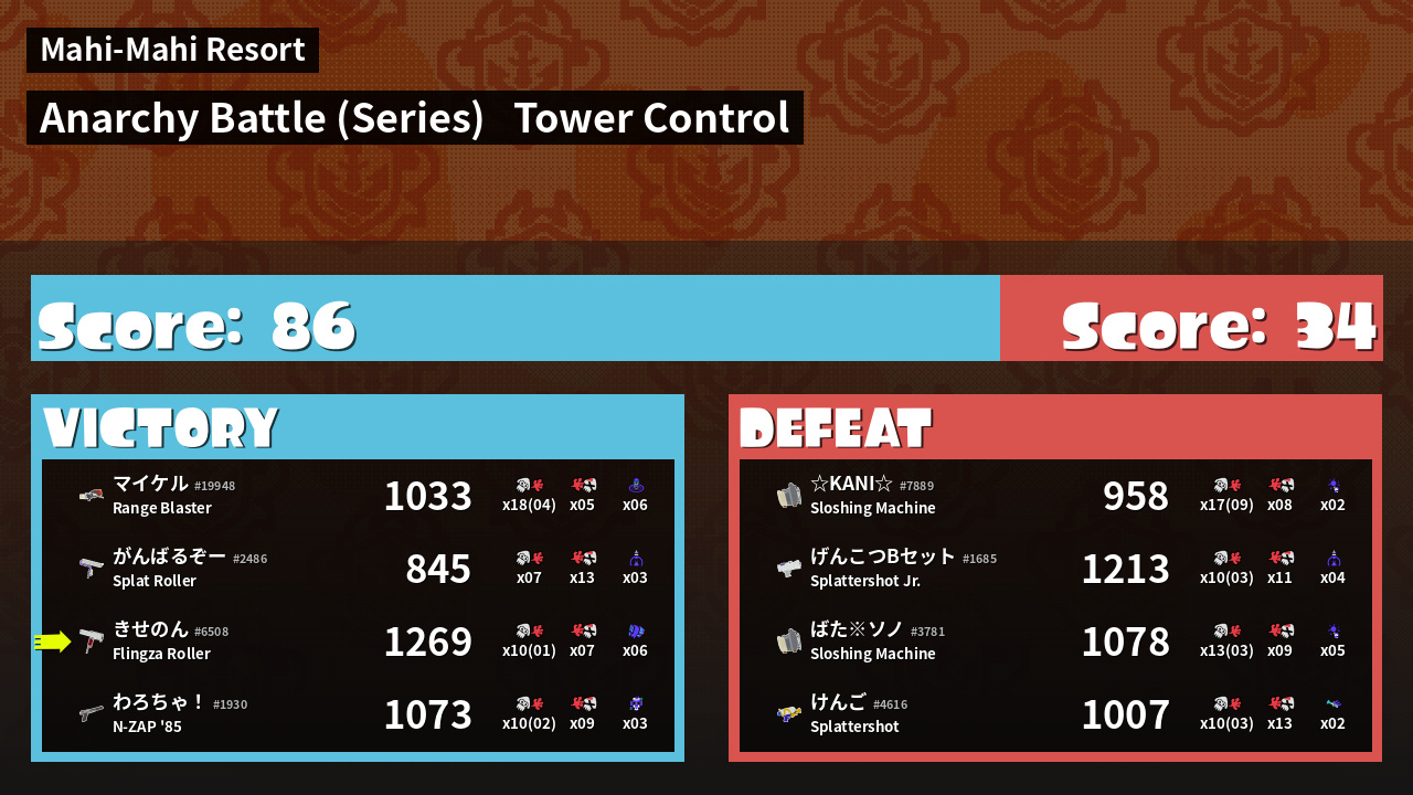 | Medals | #1 Turf Inker #1 Tenta Missiles User #2 Overall Splatter | ||
