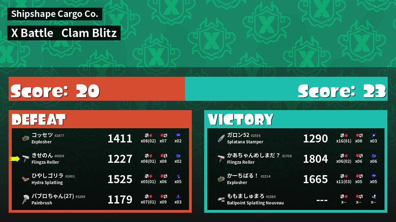 | Mode | Clam Blitz - X Battle | ||
