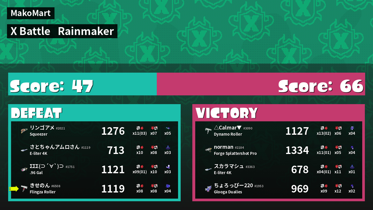 | Mode | Rainmaker - X Battle | ||