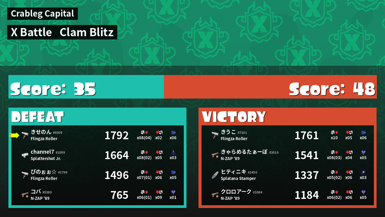 | Medals | #1 Overall Splatter #1 Score Booster #1 Clam Carrier | ||