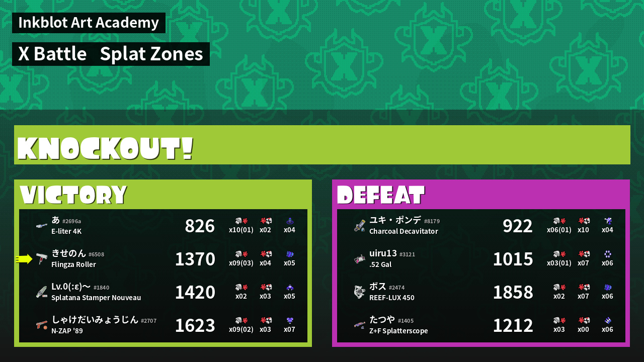 | Medals | #1 Splat Zone Guard #1 Splat Assister #1 Ground Traveler | ||