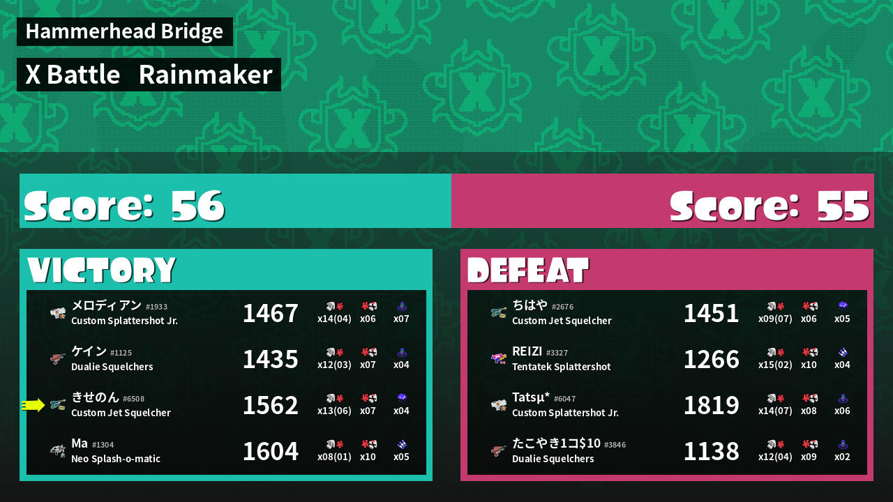 | Medals | #1 Popular Target #1 Splat Assister #1 Rainmaker Stopper | ||