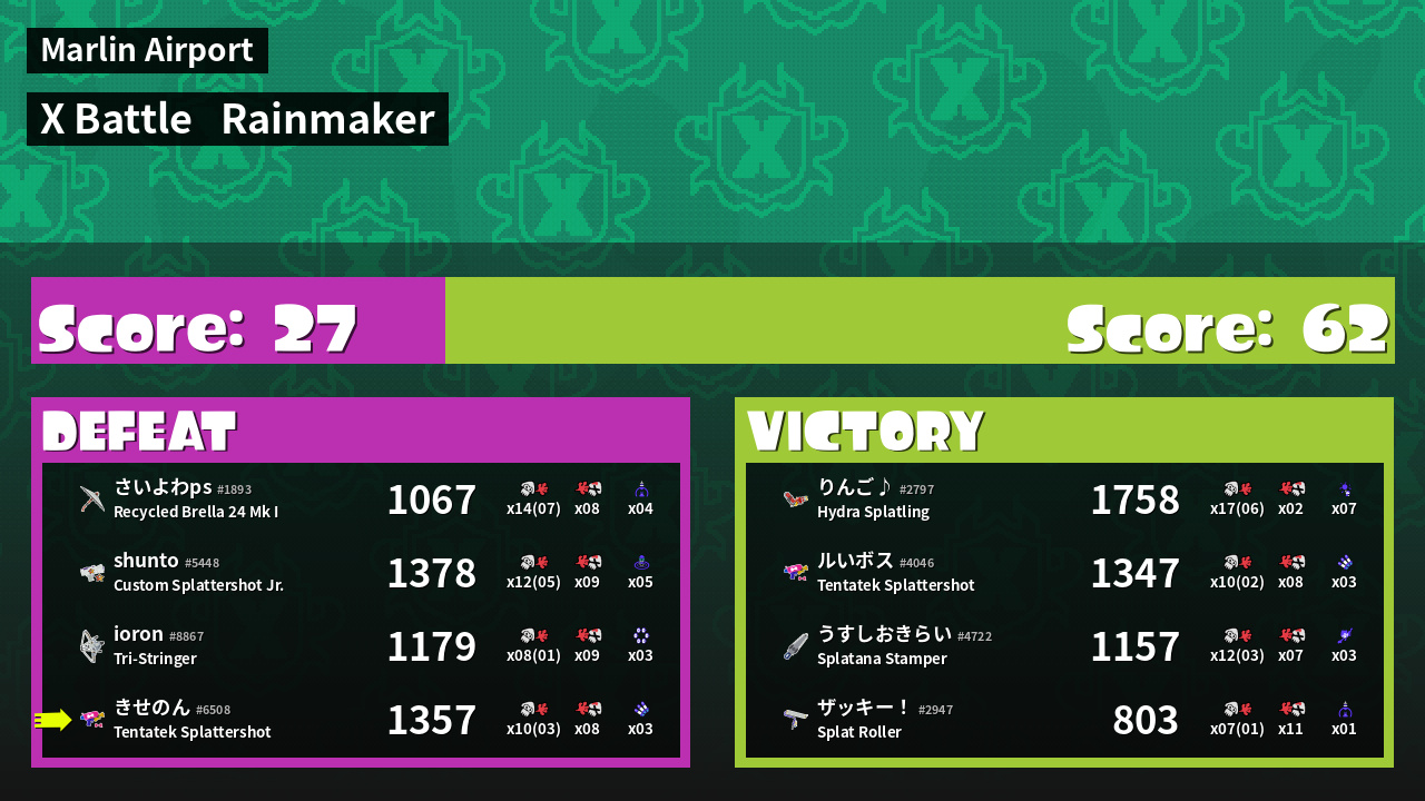 | Medals | #1 Enemy Splatter #1 Rainmaker Carrier #1 Rainmaker Stopper | ||