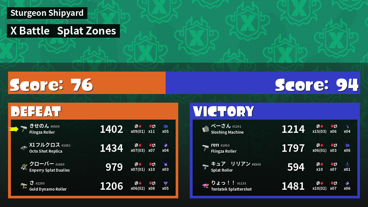 | Medals | #1 Overall Splatter #1 Splat Zone Guard #1 Popular Target | ||