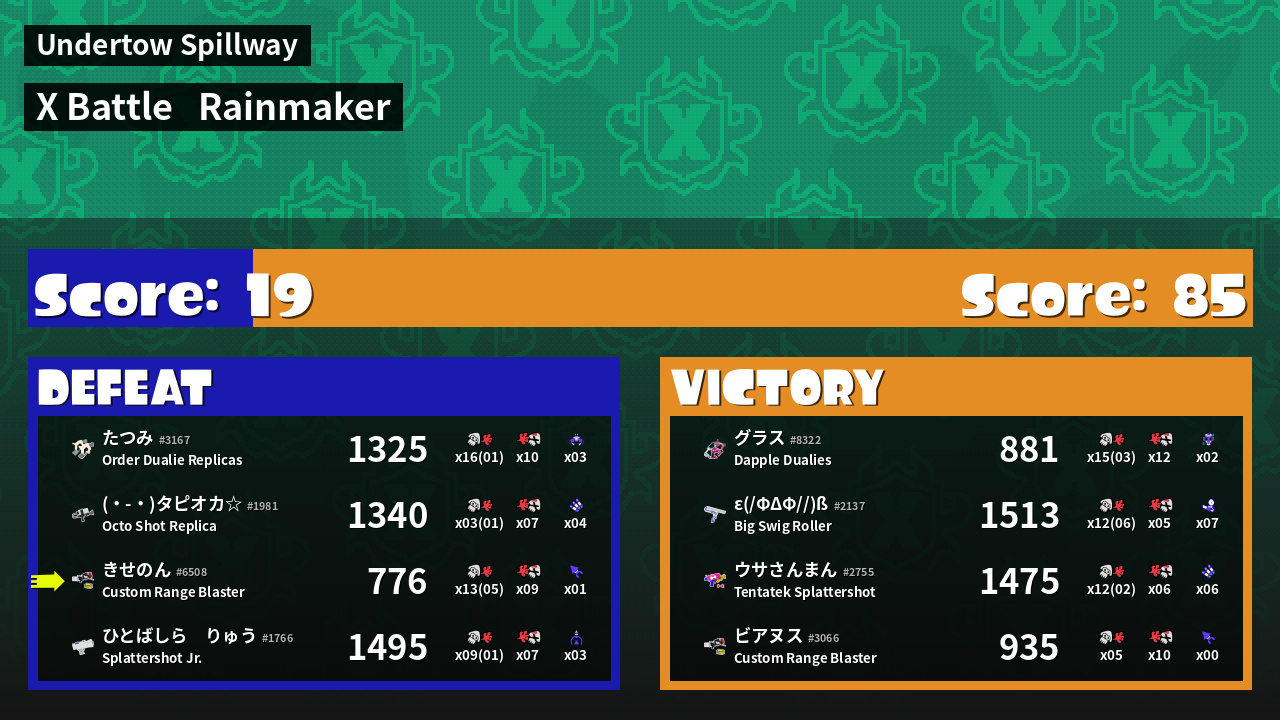 | Medals | #1 Splat Assister #1 Ground Traveler First Splat! | ||