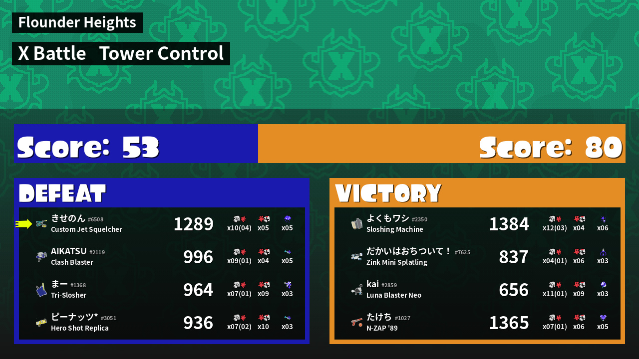| Mode | Tower Control - X Battle | ||