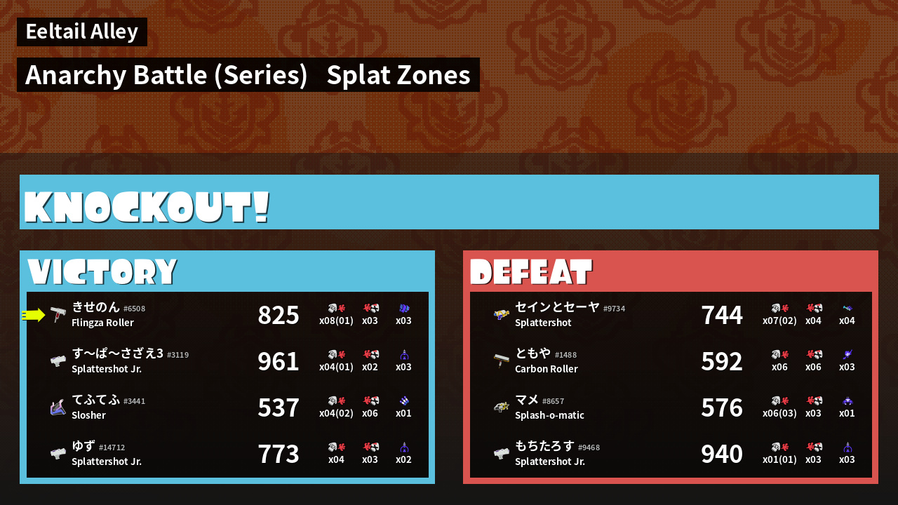 | Medals | #1 Overall Splatter #1 Splat Zone Guard #1 Enemy Splatter | ||