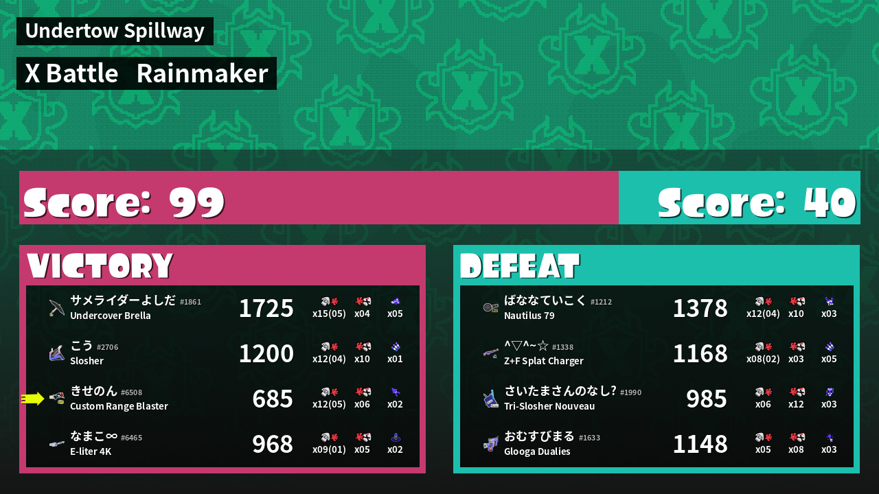 | Weapon | Custom Range Blaster ( Splat Bomb / Kraken Royale) | ||
