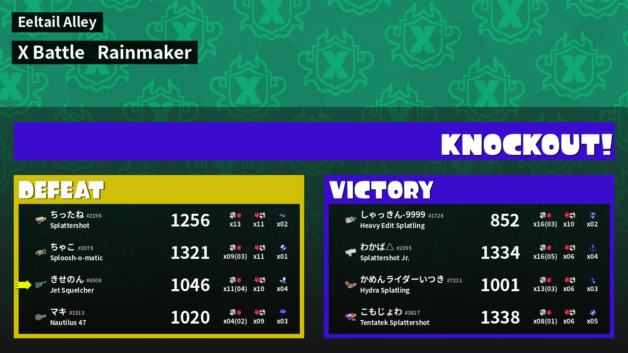 | Medals | #1 Splat Assister #1 Rainmaker Stopper #1 Damage Taker | ||