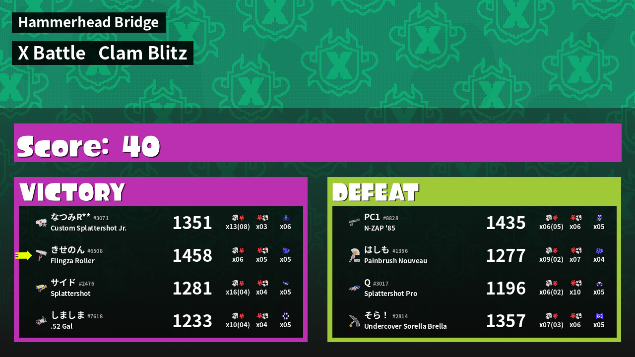 | Mode | Clam Blitz - X Battle | ||