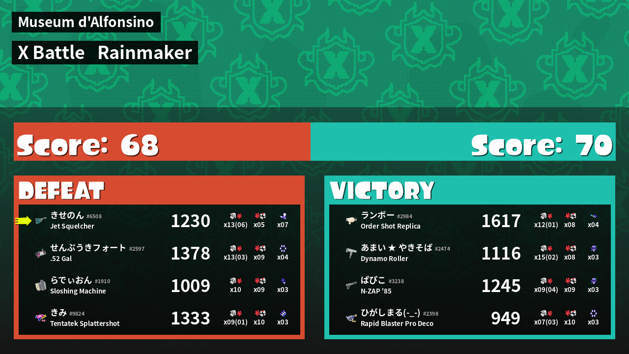 | Mode | Rainmaker - X Battle | ||