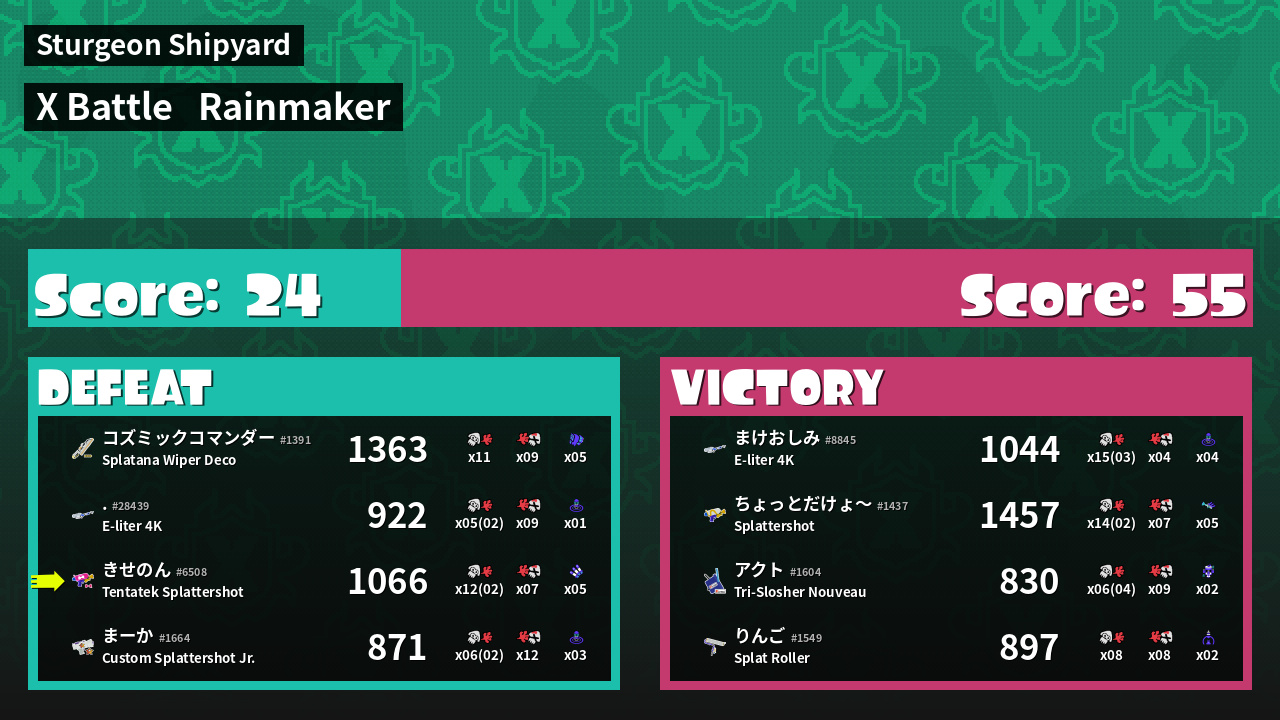 | Medals | #1 Overall Splatter #1 Splat Assister #1 Rainmaker Stopper | ||