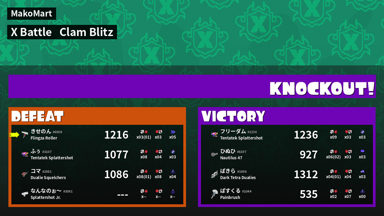 | Weapon | Flingza Roller ( Ink Mine / Tenta Missiles) | ||