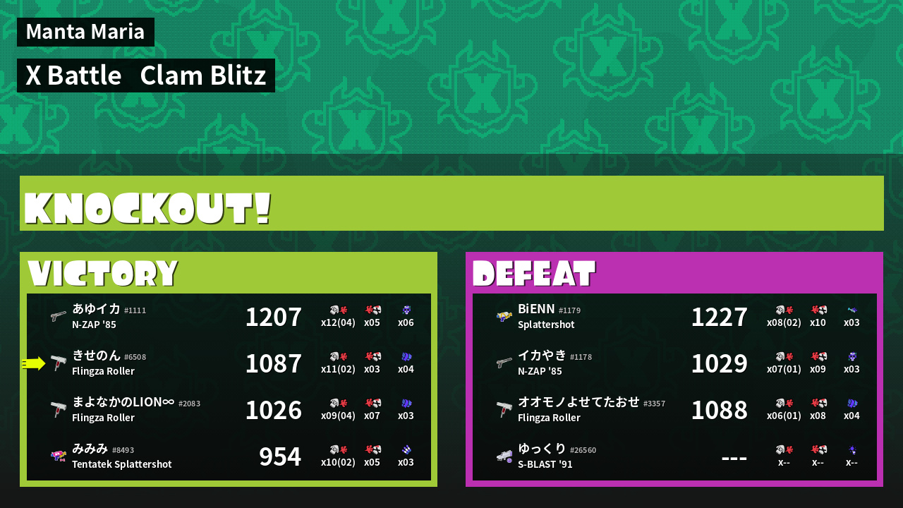 | Mode | Clam Blitz - X Battle | ||