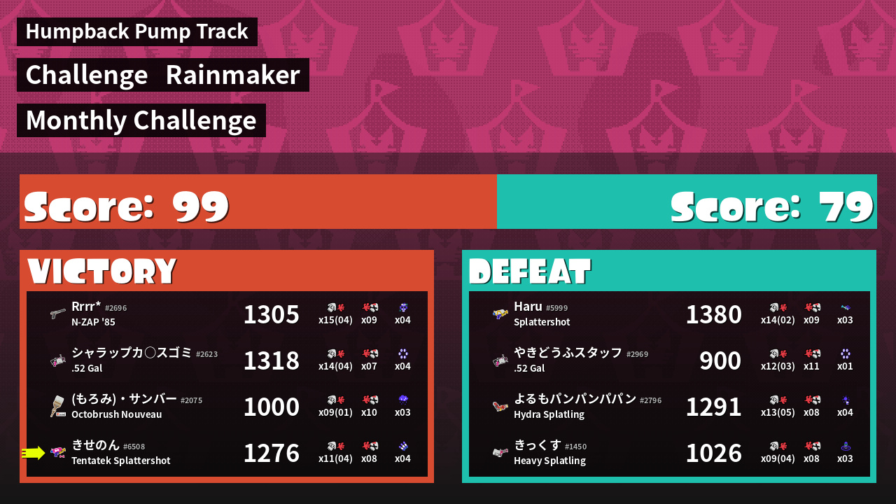| Medals | #1 Splat Assister #1 Ink Consumer | ||