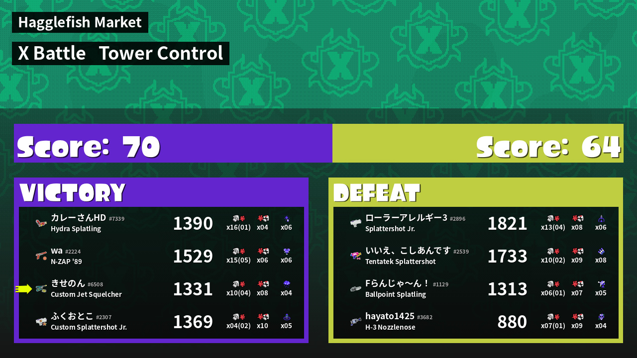 | Mode | Tower Control - X Battle | ||